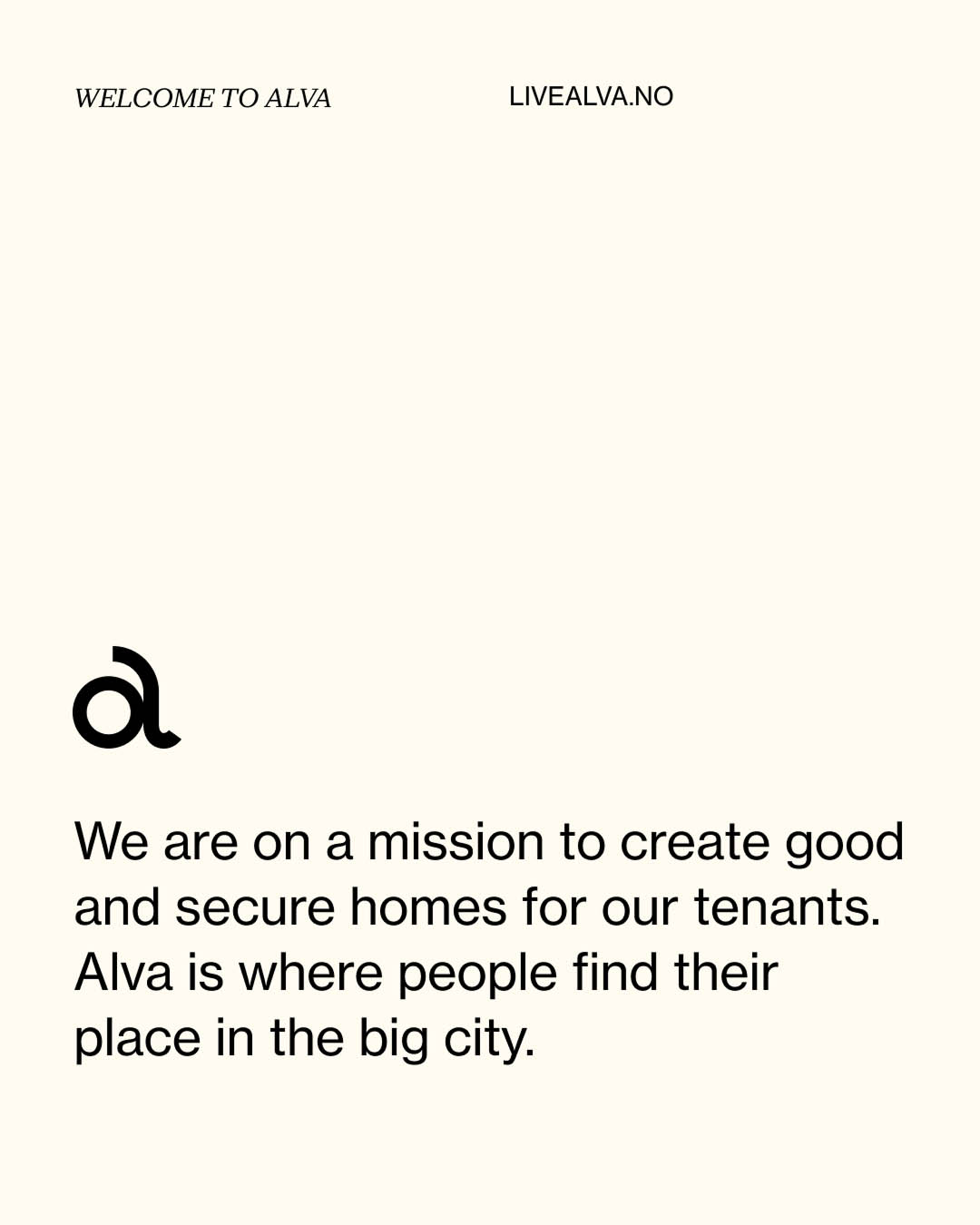 Over the course of a year, I had the pleasure to work with Carucel Eiendom on their ambitious new brand and rental concept, Alva. Alva is a housing service that offers young tenants a professional, progressive, and safe rental experience in central Oslo.