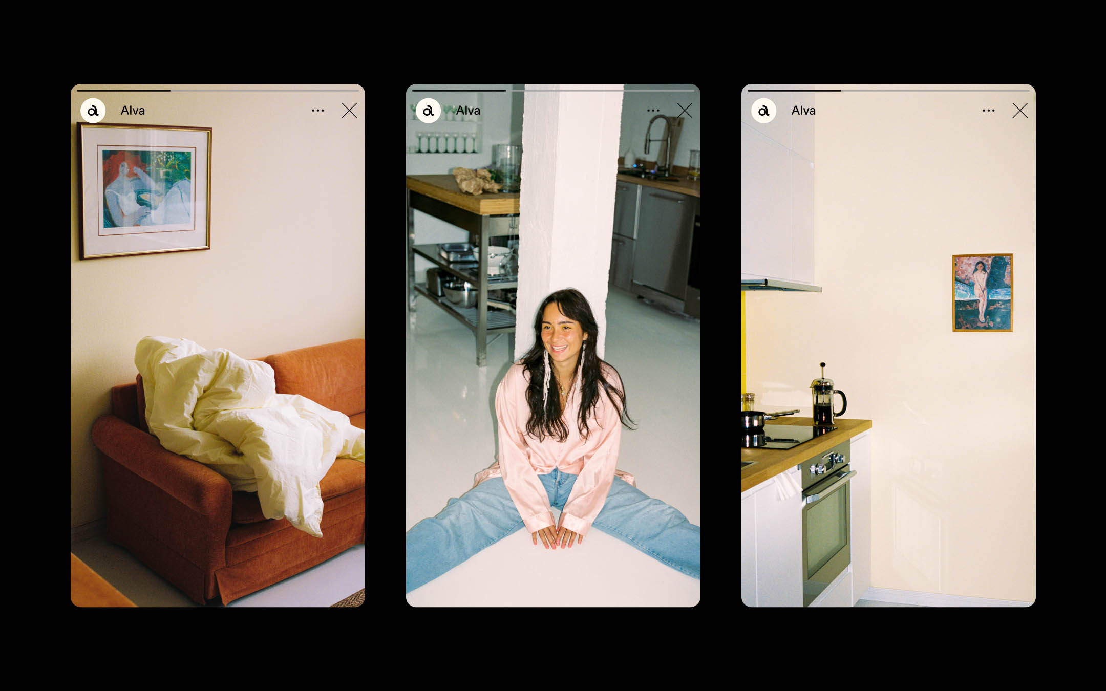 Through the strategic process, we found it was essential to meet the target group where they are. Not to sell a glossy rental company with fully updated apartments, but rather to convey a sense of authenticity, freedom, and growth. The logo is meant to be informal and playful but at the same time strong and reliable. Warm colors and casual photography help build a sense of community and youthfulness while strict layouts let viewers know Alva takes them seriously. Additionally, graphic window shapes are subtly woven through the visuals, from the website to social media, helping to further establish a sense of fun and individuality.