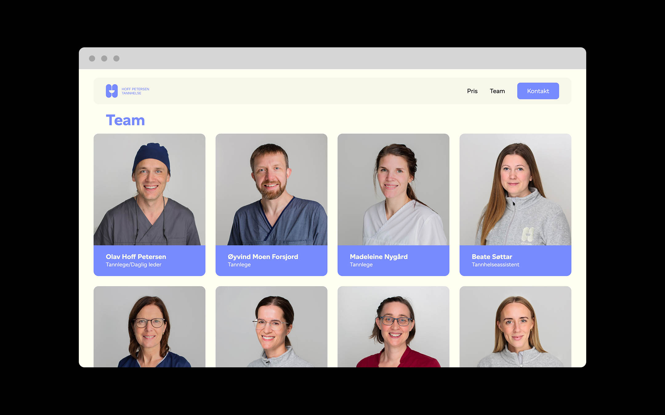 In the spring of 2023 I worked on a small visual identity for a family run dental practice in Mosjøen. Hoff Petersen Tannhelse is faced with the challenge of keeping up in a market where startup backed dental clinics are opening up all across Norway.